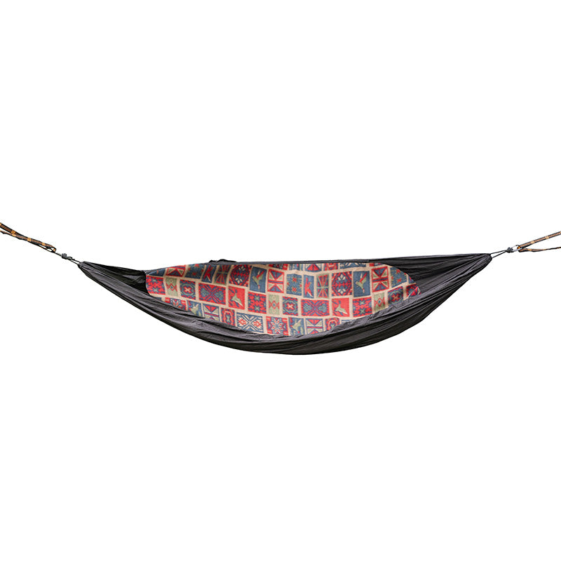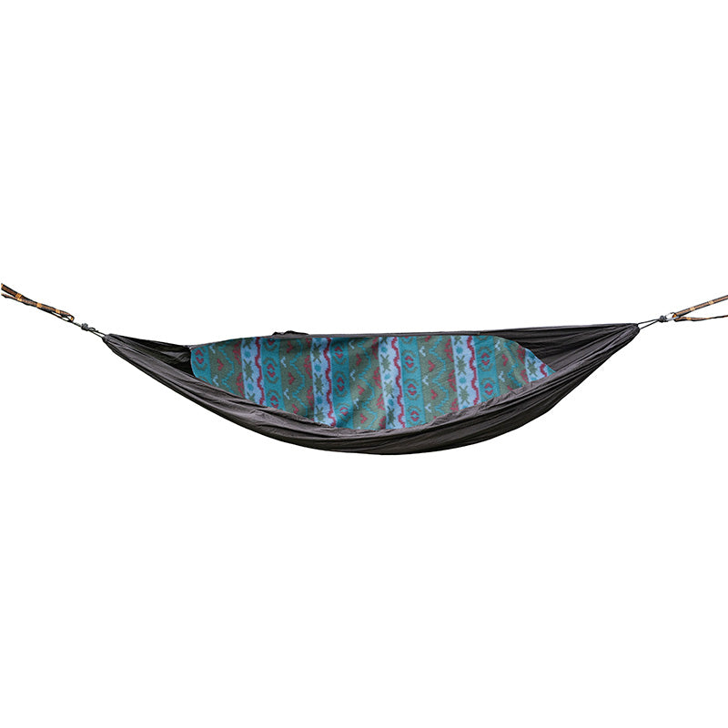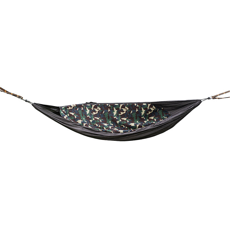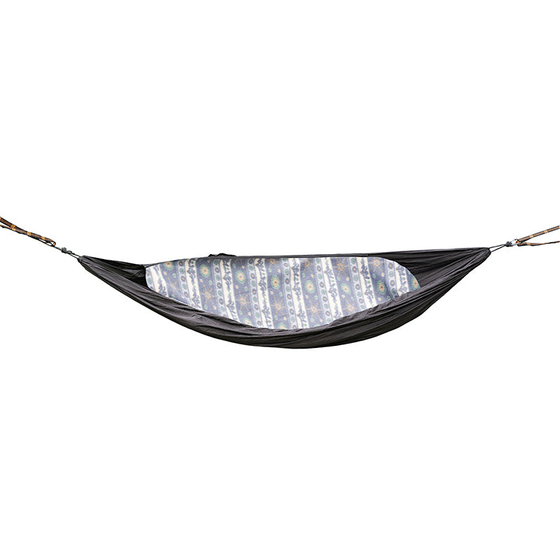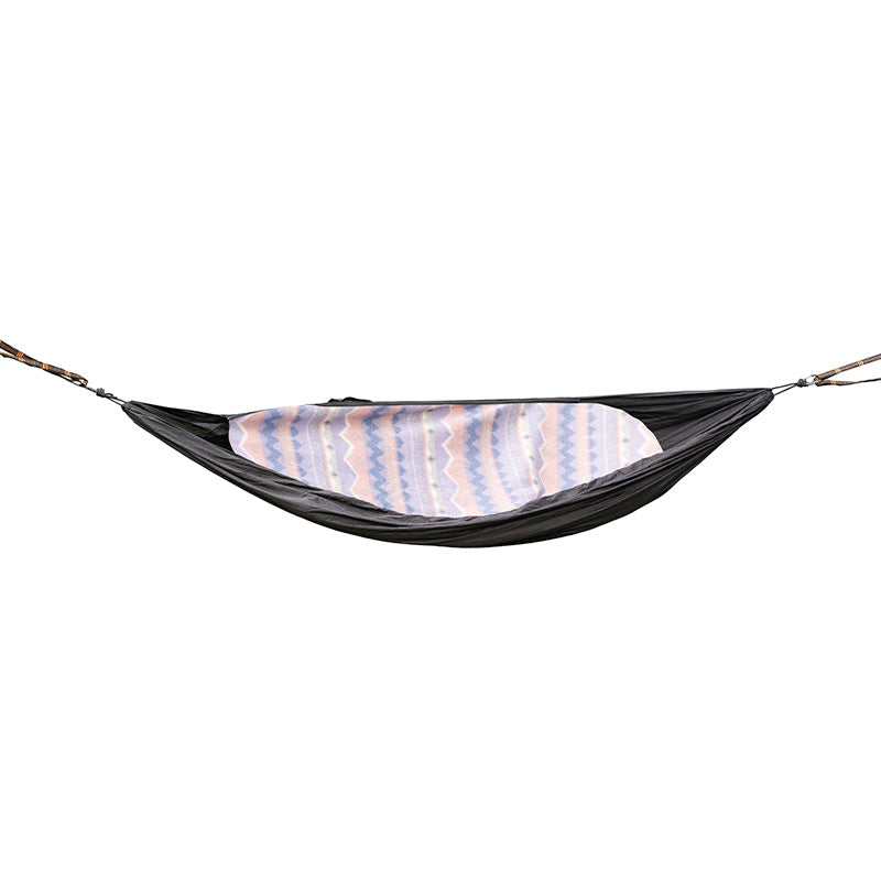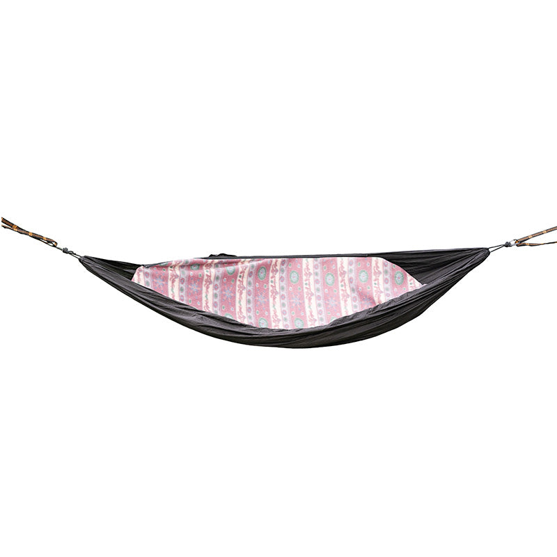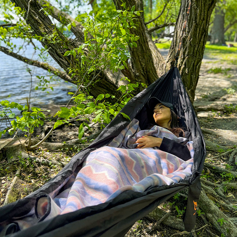 2- En hamac avec une doudou en polar qui se ''zippe'' au contour, question d'avoir l'impression de passer ses beaux jours dans un cocon de papillon.
