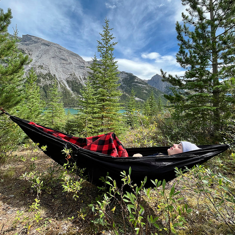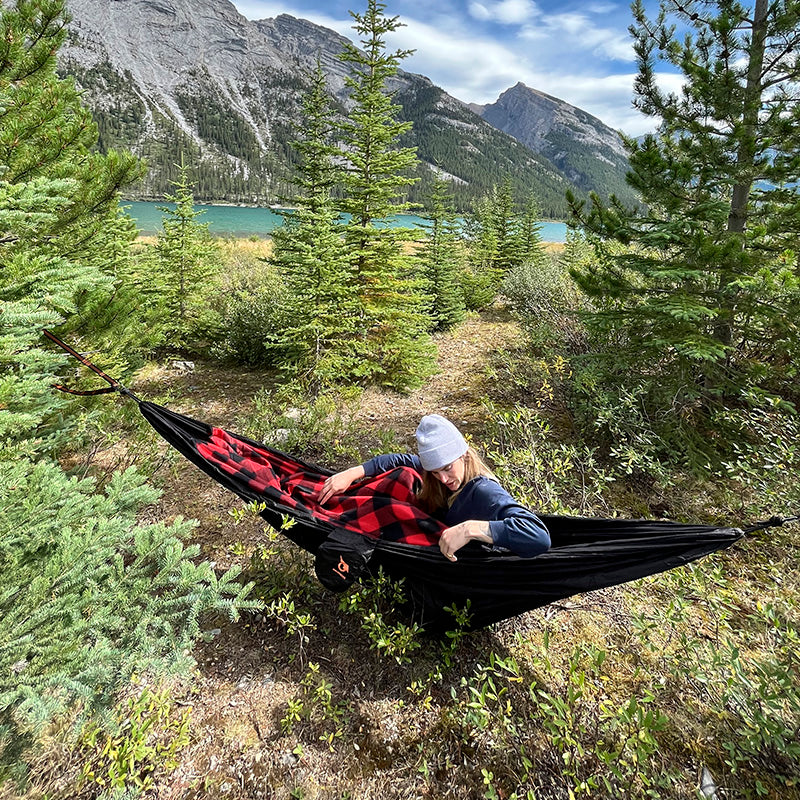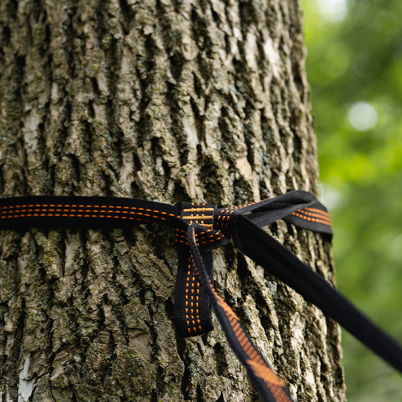 (Tout est inclu, les sangles autour des arbres, les mousquetons et un soupçon de bonheur)