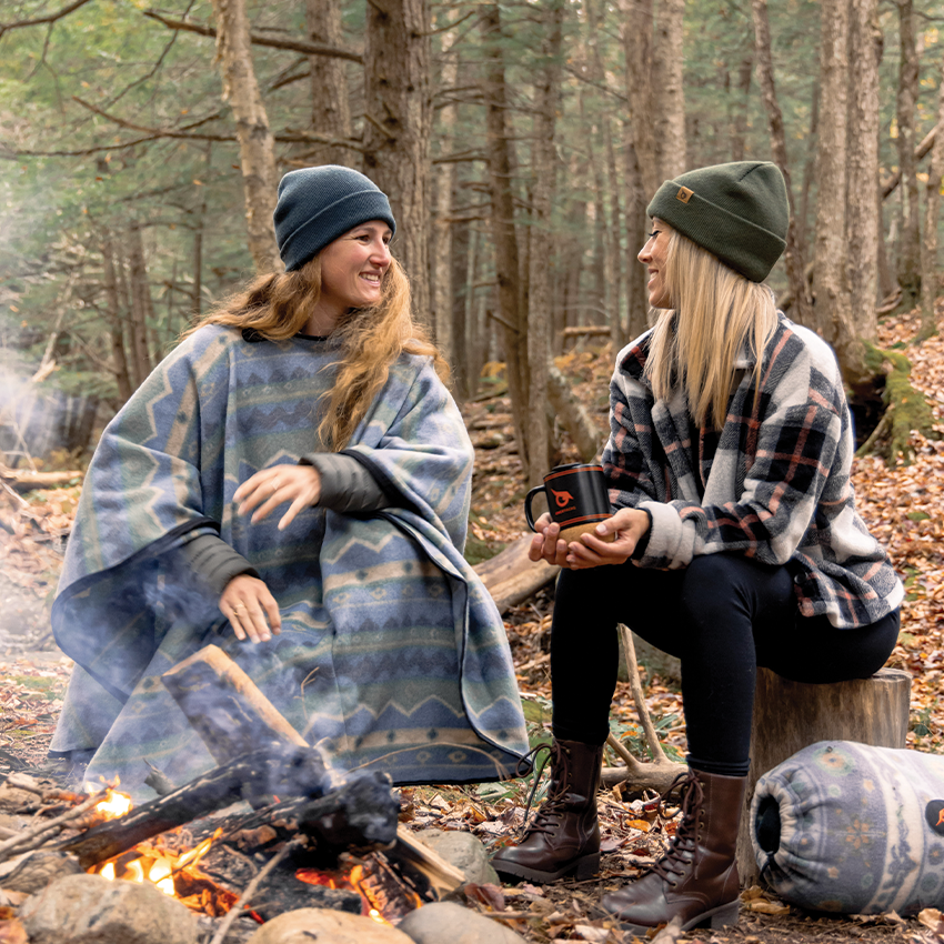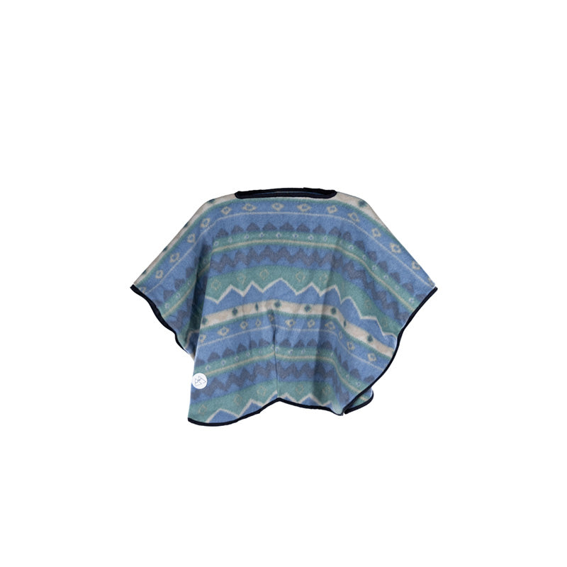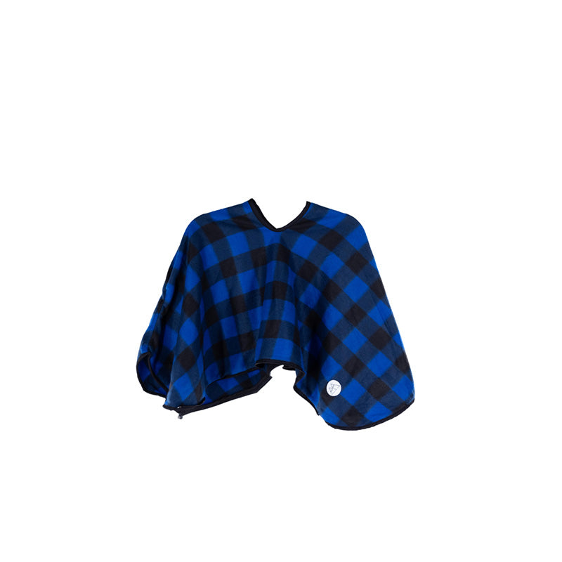 3- La couverture se glisse par dessus la tête, pour devenir un poncho
