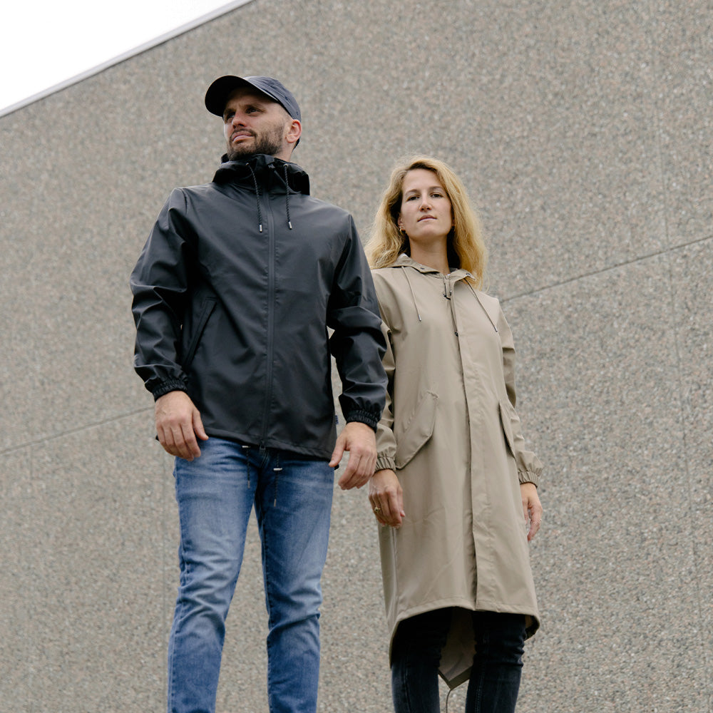 - Fermeture éclair enduite incluant un rabat avec boutons-pression