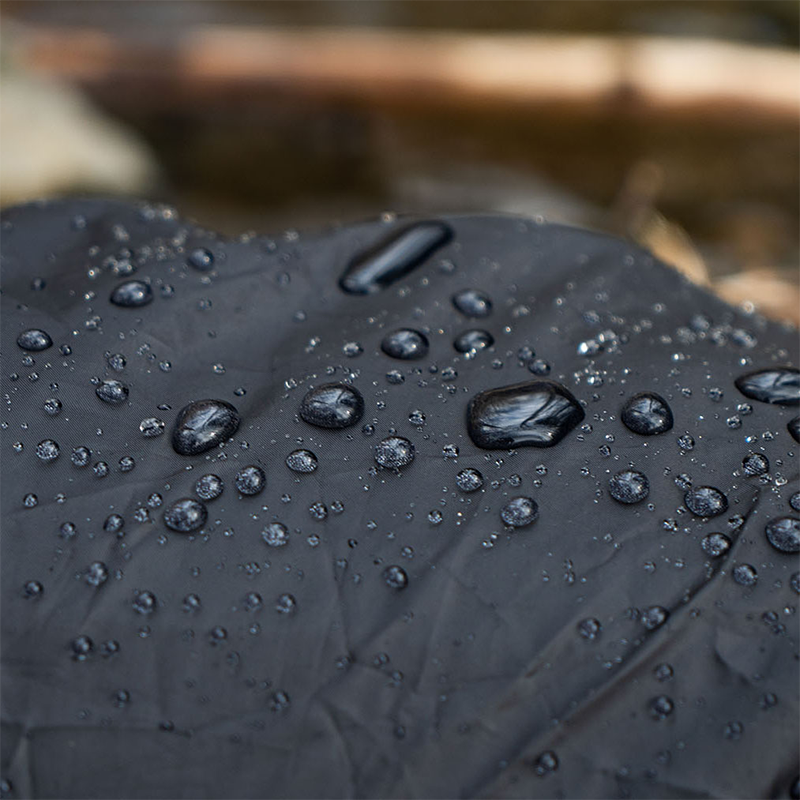 - Hydrofuge mais non-imperméable, en cas de grosse averse un couvre-sac imperméable est requis (optionnel).
